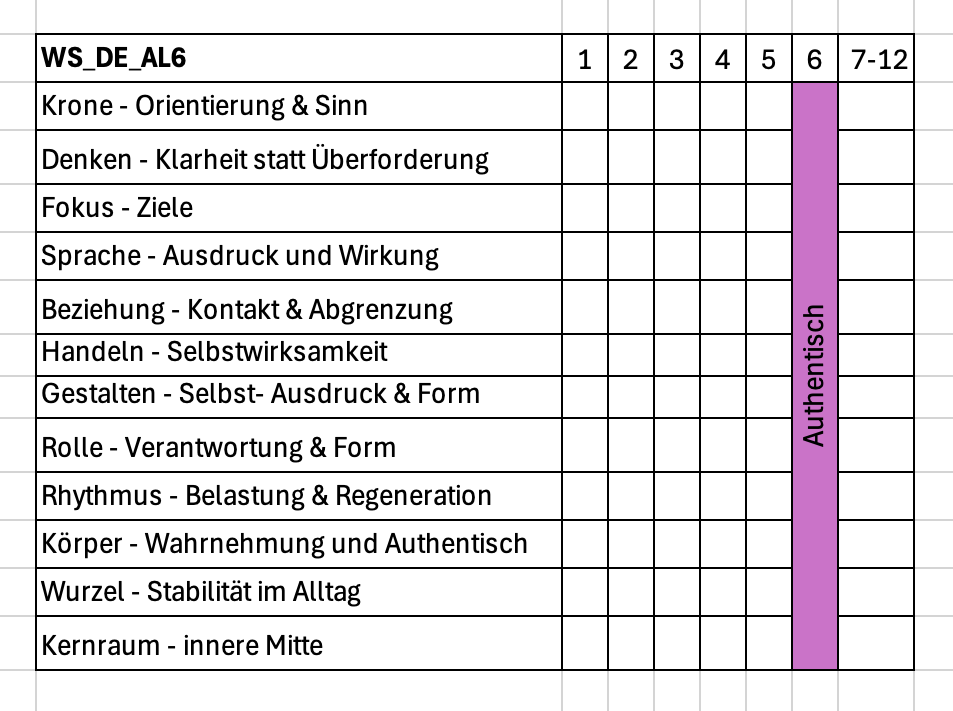 Dieser Kurs basiert auf dem McQuirey-Atlas, einem mehrdimensionalen Orientierungsmodell zur Beschreibung menschlicher Wahrnehmung, Haltung und Handlung. Der McQuirey-Atlas bildet ein umfassendes Gesamtgefüge. Dieser Workshop stellt daraus eine klar abgegrenzte Ebene dar: der Selbst-Raum aufbauend auf die Null-Linie in Stufe 2. Hier werden 12 Themen auf Aktualität neu geordnet und fokussiert. Auf Basis von Resonanzfelder steht die vertikale Betrachtung aller zwölf Themenfelder (A–L) ausschließlich auf dieser Selbstverortung. Ziel ist nicht Analyse oder Veränderung, sondern das Einbringen eigener Themen und erkennen von Fremdanteilen, die übernommen wurden.